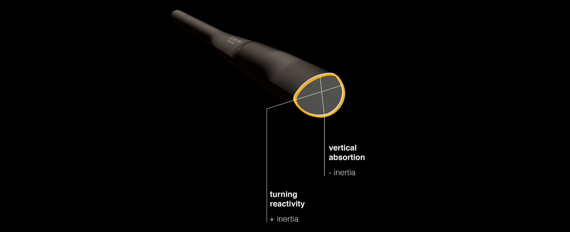 By reducing the vertical section, we achieve greater absorption of vertical impacts and vibrations. This translates into less fatigue in the cyclist's hands and arms, allowing them to maintain a high downhill pace for longer.
