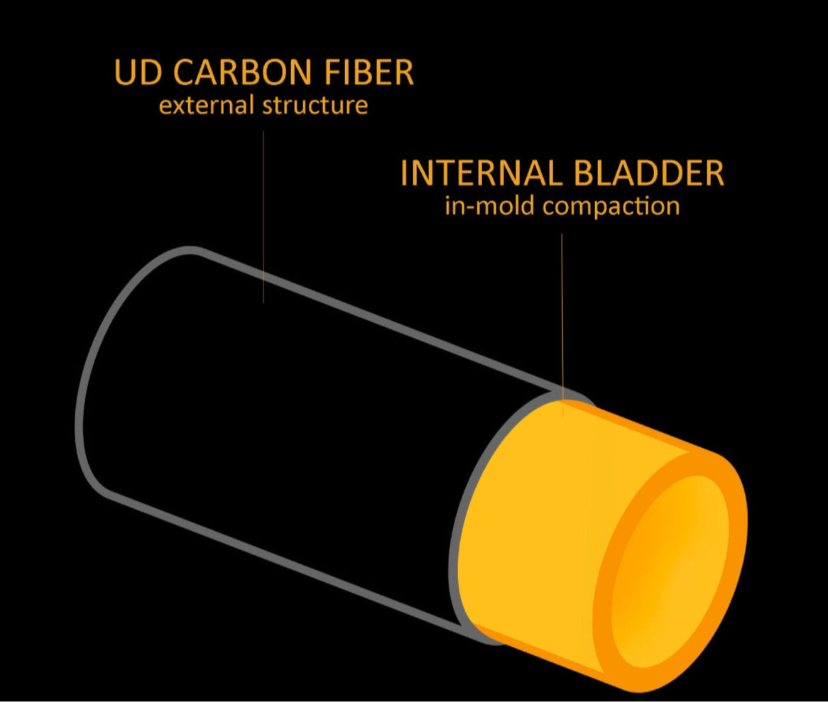 We use internal bladders specifically designed for each handlebar, so the carbon fibers compact perfectly against the mold, preventing the formation of wrinkles and resin pools. This ensures a smooth and consistent structure throughout the entire geometry.