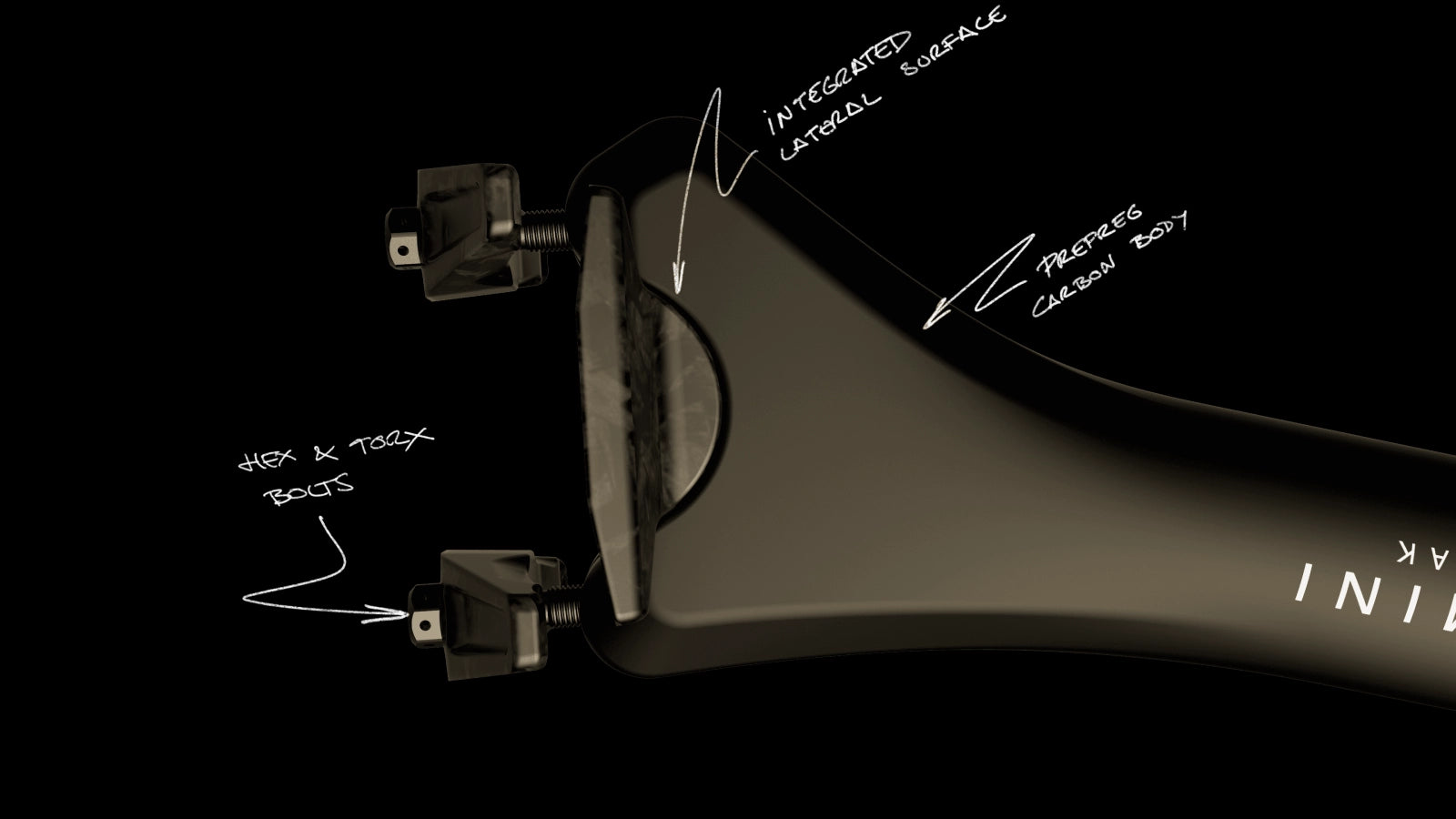Its body is conceived as a continuous carbon shell . This design allows the carbon fiber to work stretched throughout the entire geometry, achieving an extremely light and resistant structure, while the fixing system is made of forged carbon , a cutting-edge material, and all the screws are made of Titanium , to lighten your bike as much as possible and make you feel like you're flying with it.
